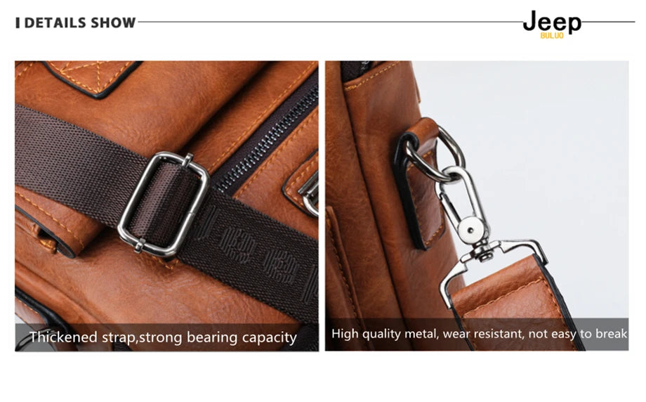 JEEP BULUO Men's Leather Briefcase Set 2pcs Laptop Bag